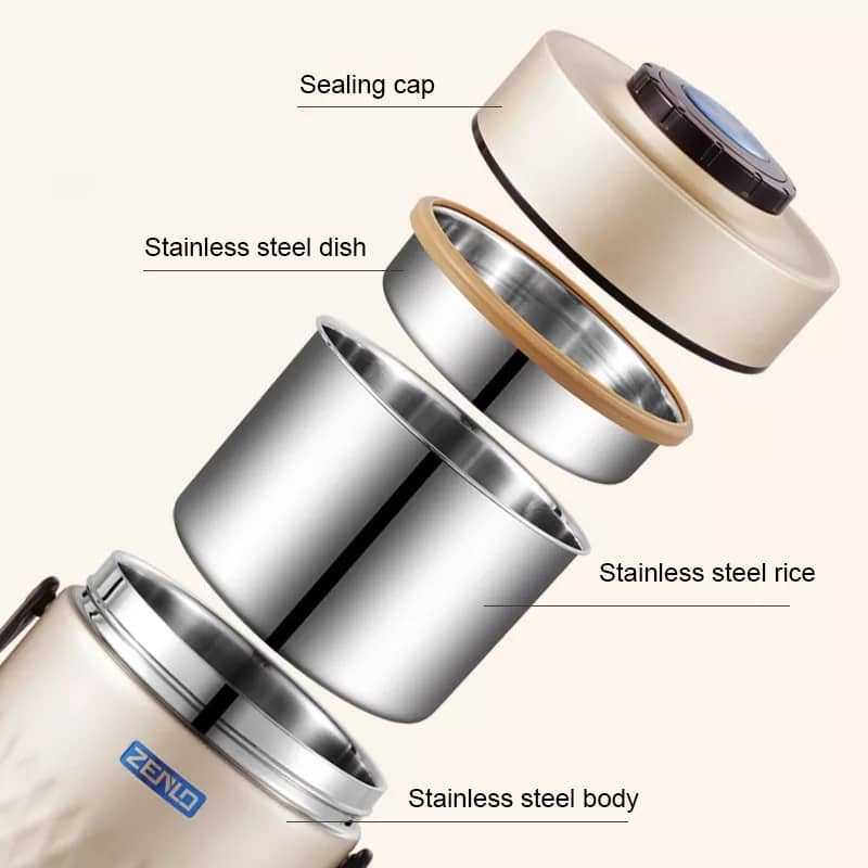 Food-grade stainless steel inside and outside means no metallic aftertaste, stainless steel is antibacterial and won’t leach any harmful chemicals into your food & durable, not heavy to carry about This makes it the best material for your lunchbox and for your kids.